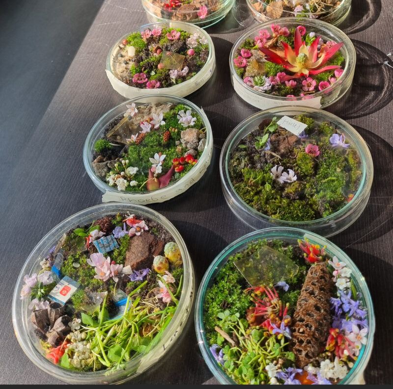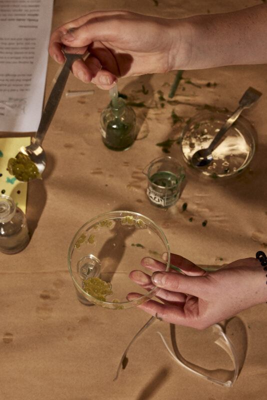 Similarly to Mattingly, Jessie French, a Naarm (Melbourne, Australia) based scientist/artist, explores the possibilities of a “speculative post-petrochemical future” through using algae-based polymers in installations and functional plastics.  French suggests there is greater potential in not defining roles and offers provocations for students to consider innovative solutions and to see the interconnectedness of science and art that have a real-world impact.