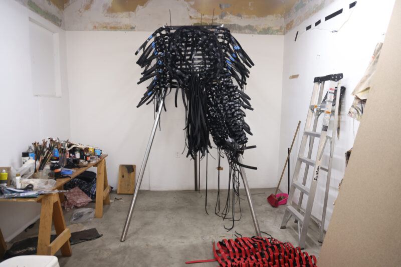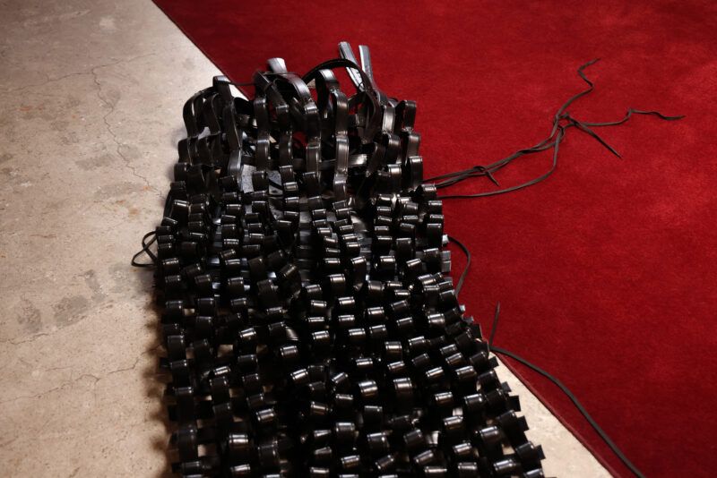 SO—Vi Prêt-à-Patria por primera vez en la galería kurimanzutto en la Ciudad de México en el 2021, donde se presentó como una instalación escultórica y un video performance. En Venecia estará la escultura, ¿pero ahora el performance será en vivo?