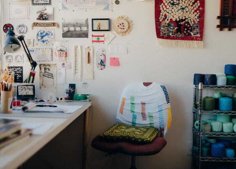 When I started dating my husband, I went to Israel with him and that was the first time that I spent time there as an adult and started to understand what it’s like there. I also visited the West Bank and saw friends and distant family who still live there and experienced what that was like. Engaging with Palestinian craft was a way for me to start thinking about how it is that I’m Palestinian, what that means to me, to my identity, and to my experience being a Palestinian member of the diaspora in America, not having been raised there. I was learning about craft traditions, the history of Palestine, all the different patterns in Palestinian embroidery, and the geolocations of the patterns. Connecting with this craft tradition opened all of that for me.