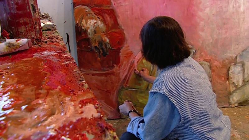 There are few paintings that come fast and sharp. I’m interested in this idea of looking down at a scene to get a different perspective within the painting. I’m sure I got that from Matisse. I can’t say what makes me say, “that’s wrong, that stays, that goes, this should be longer.” Sitting there and looking and going, “I have to do something, and do something, and then do something else,” that’s how a painting gets made.