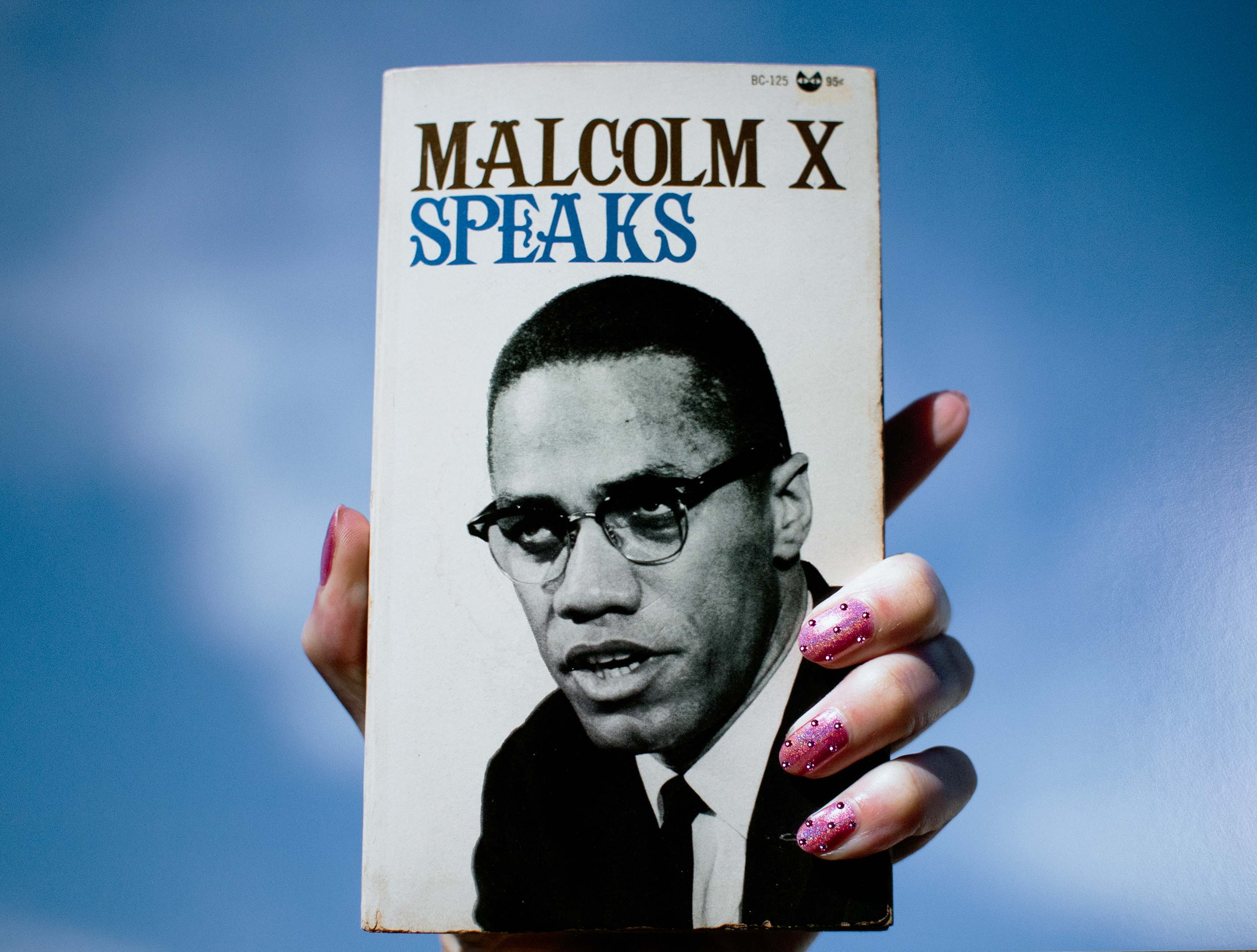 Sadie Barnette, ​Untitled (Malcolm × Speaks)​, 2018. Archival pigment print and Swarovski crystals. Courtesy of the artist and Charlie James Gallery, Los Angeles.