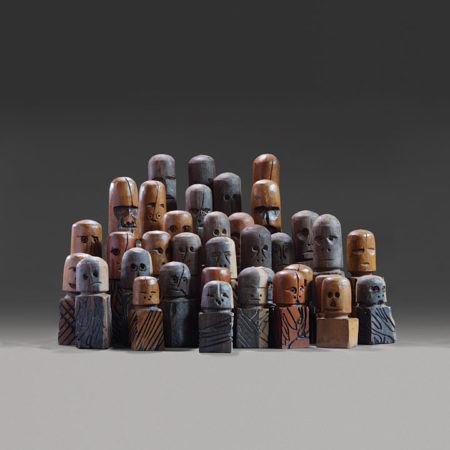 El Anatsui was born in Anyanko, Ghana in 1944. Many of Anatsui’s sculptures are mutable in form, conceived to be so free and flexible that they can be shaped in any way and altered in appearance for each installation. Working with wood, clay, metal, and—most recently—the discarded metal caps of liquor bottles, Anatsui breaks with sculpture’s traditional adherence to forms of fixed shape while visually referencing the history of abstraction in African and European art.