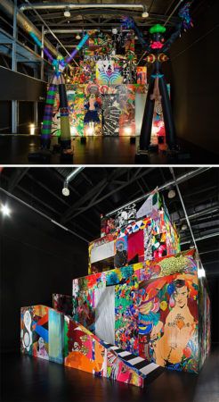The collective assume vivid astro focus (avaf) was formed in New York City in 2001. Its principal members are Eli Sudbrack (born in Rio de Janeiro, Brazil in 1968) and Christophe Hamaide-Pierson (born in Paris, France in 1973). Avaf fuses drawing, sculpture, video, and performance into carnavalesque installations in which gender, politics, and cultural codes float freely. A study in visual adaptation and modification, avaf’s work recycles and transforms imagery from one project to the next—often in the form of densely patterned wallpapers and graphic signage.