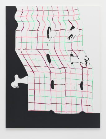 The history of painting itself is also a target in Madani’s witty works, with spread-eagled characters resembling Color Field paintings, or characters wearing stripes appearing to be both prisoners and Minimalist abstractions. Painted with quick gestures, where oozing paint often doubles as bodily fluids, food, and stains, Madani’s compositions are derived from sketchbooks where countless studies provide the skeleton for her speedy execution. Madani’s pictures are also transformed into stop-motion animations where the artist photographs a freshly created scene over time—wet paint still glistening—resulting in stories of small calamities that are once hilarious, tender, and ghoulish.