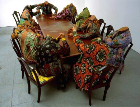 Yinka Shonibare CBE RA was born in 1962 in London, England. After growing up in Lagos, Nigeria, Shonibare studied at Byam Shaw School of Art, London (1984–89) and earned an MA from Goldsmiths College, London University (1991). Known for using batik in costumed dioramas that explore race and colonialism, Yinka Shonibare CBE also employs painting, sculpture, photography, and film in work that disrupts and challenges our notions of cultural identity.