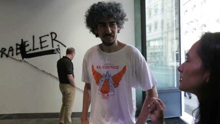 Raised as a Muslim, Sikander is also interested in exploring both sides of the Hindu and Muslim “border,” often combining imagery from both—such as the Muslim veil and the Hindu multi-armed goddess—in a single painting. Sikander has written: “Such juxtaposing and mixing of Hindu and Muslim iconography is a parallel to the entanglement of histories of India and Pakistan.” Expanding the manuscript painting to the wall, Sikander also creates murals and installations, using tissue-paper-like materials that allow for a more free-flowing style. In what she labeled performances, Sikander experimented with wearing a veil in public, something she never did before moving to the United States.