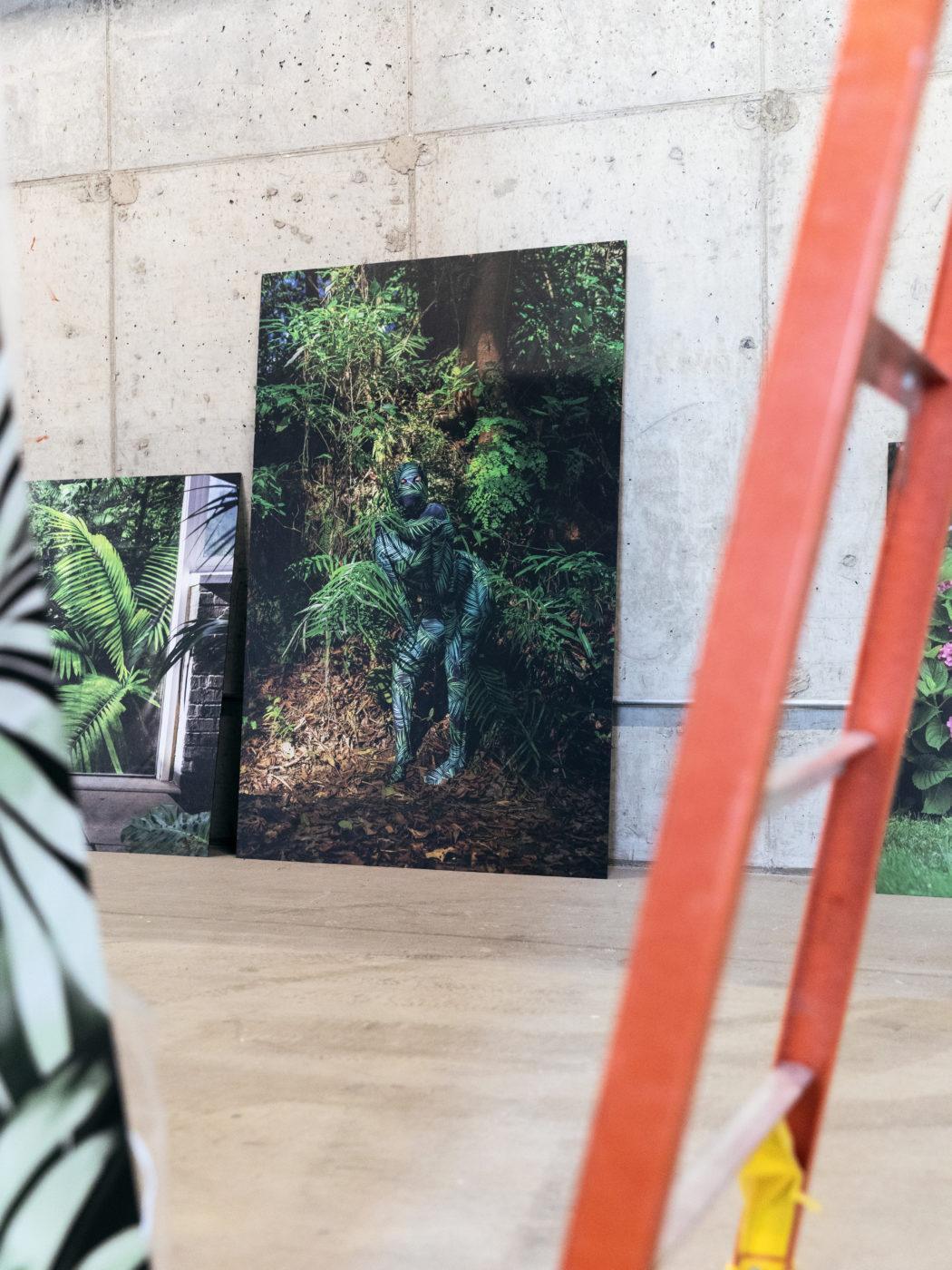 The first body suit was made out of upholstery fabric which was very constraining and uncomfortable! The first image was taken in an all-inclusive resort in the Dominican Republic. The spaces are constructed to look natural but it’s totally manmade. There was this concrete floor with planters on the side where I posed. Lying on the floor in this very claustrophobic upholstery fabric bodysuit was kind of terrifying.