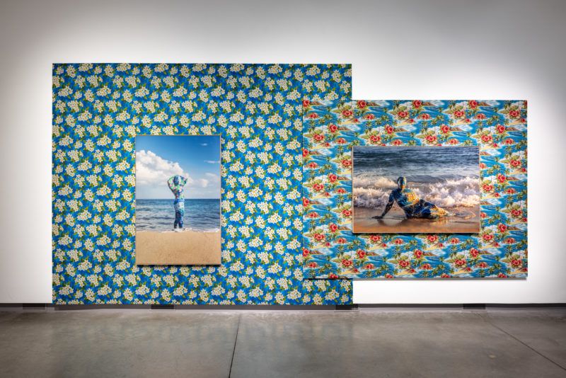 I was doing Google searches of “Dominican women” as a way to understand how Dominican women were represented to the world online through this label of identity. I started making collages with the images I found where I was denying the image of the woman, covering the image as a way to refuse or frustrate the desire to see that image: interrupting the process of consumption. I thought, I’m going to cover the image of this woman—this construction of the Dominican woman— with this tropical pattern, that is also a construction. Those collages ended up being source material for a body of work called Containers, where I started sewing bodysuits based on the poses that I saw repeated in the Google search results.