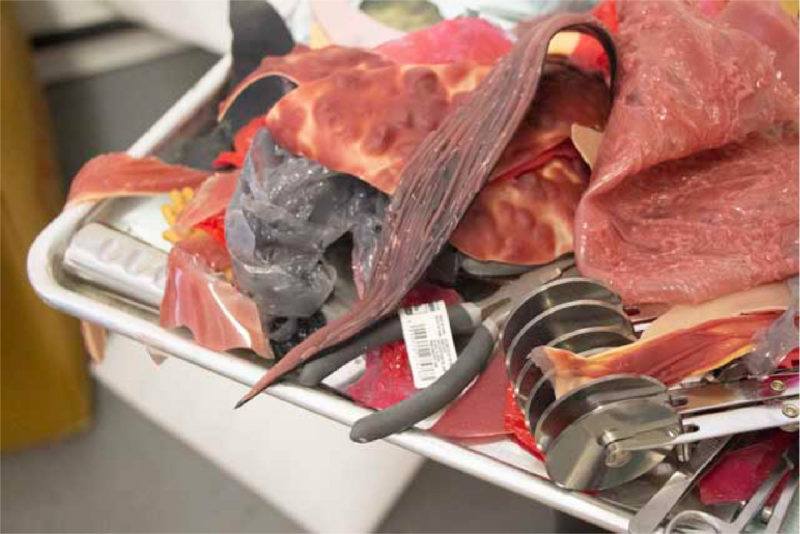 Doreen Garner Right now I work mostly in silicone, and random materials that get mixed into the silicone, but it started from working with glass at the Tyler School of Art in Philadelphia. It’s a challenging material, and is expensive outside of school. I found that it has a lot of similarities with the body and how the body is moldable, and death and rigor mortis. With a lot of glass casting, you take molds of objects and cast them in wax. That usually includes silicone or urethane rubber, which resembled skin to me, more than glass. Now I spend all my money on buckets of silicone.