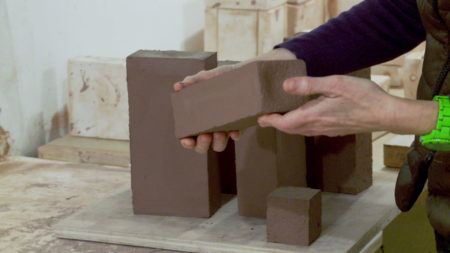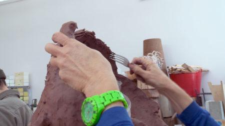 • Arlene Shechet with studio assistant Andrew Molleur at the artist's studio, Woodstock, NY