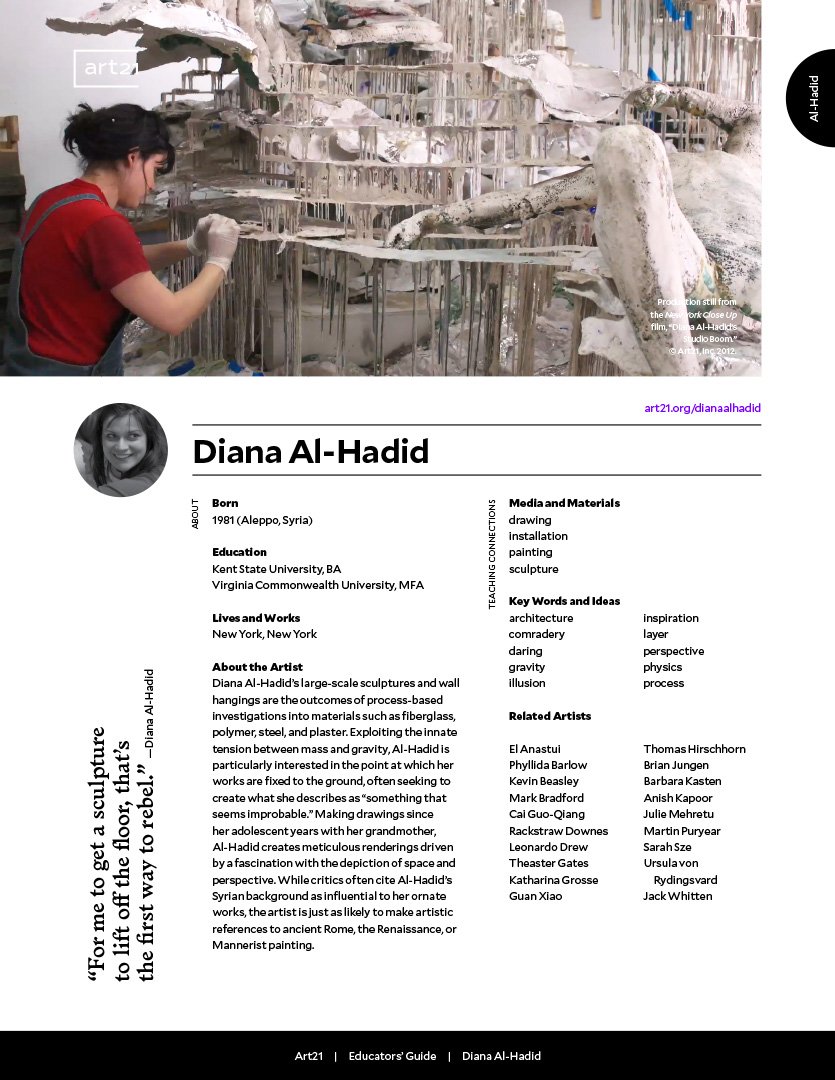 The questions and activities included in this guide are recommendations for incorporating Art21 films featuring Diana Al-Hadid into your classroom.