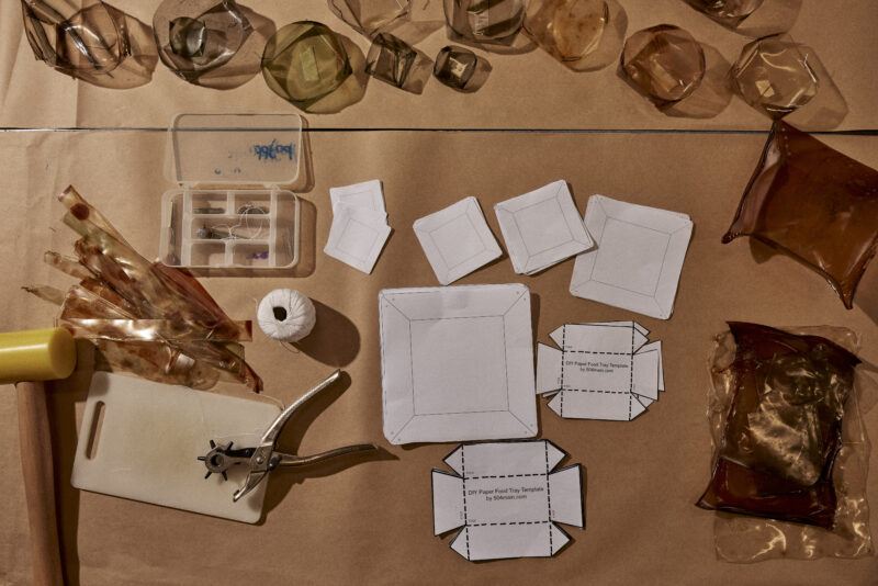 Similarly to Mattingly, Jessie French, a Naarm (Melbourne, Australia) based scientist/artist, explores the possibilities of a “speculative post-petrochemical future” through using algae-based polymers in installations and functional plastics.  French suggests there is greater potential in not defining roles and offers provocations for students to consider innovative solutions and to see the interconnectedness of science and art that have a real-world impact.