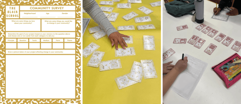 Process Deck by The Black School and Art 383 students interacting with the deck and handout. Courtesy of Jess Perry-Martin.