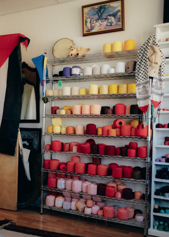 When I started dating my husband, I went to Israel with him and that was the first time that I spent time there as an adult and started to understand what it’s like there. I also visited the West Bank and saw friends and distant family who still live there and experienced what that was like. Engaging with Palestinian craft was a way for me to start thinking about how it is that I’m Palestinian, what that means to me, to my identity, and to my experience being a Palestinian member of the diaspora in America, not having been raised there. I was learning about craft traditions, the history of Palestine, all the different patterns in Palestinian embroidery, and the geolocations of the patterns. Connecting with this craft tradition opened all of that for me.