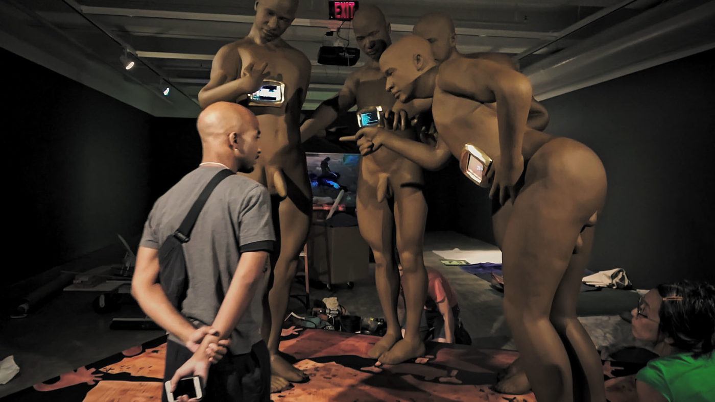 Bringing together such practices as vogueing, 3D animation, and drawing, Jacolby Satterwhite’s videos portray environments that are quite literally out of this world. Creating virtual alternate realities that liberate his self-proclaimed shyness, Satterwhite practice deals with themes of regeneration, healing, and resurrection. Describing references to Caravaggio’s “doubting Thomas” imagery found in his own work, Satterwhite says, “The ultimate metaphor about the piece is using ritual as a way to ground you,” adding, “making art is just a way to ground me—that I’m real.”