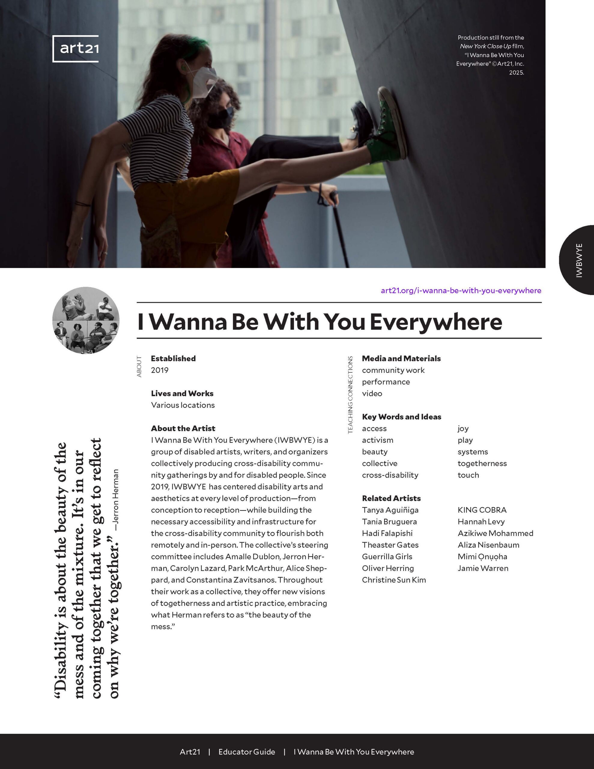 Developed to accompany films from Art21’s Extended Play and New York Close Up film series, this special collection of Educator Guides are available individually, by featured artist, as free downloadable resources.