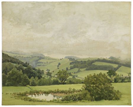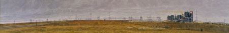 Rackstraw Downes was born in Kent, England in 1939. Often described as a realist painter, Downes prefers not to use that term. He views the act of seeing and the art of representation as culturally taught, with different cultures accepting different delineations of the world as realistic. He does not think of himself as a landscape painter, but as a painter of his surroundings—his environment. Often painted in a panoramic format, Downes’s images evince careful attention to details as well as to broad expanses of their surroundings.