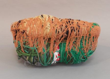 Scott’s vivid and enigmatic sculptures, which evolved in shape and material throughout her career, expressed her imagination in ways she could not through speech. Her abstract works have been compared to nests and cocoons while her processes alluded to both ritual and play. Described as hermetic and complex, the wrapping suggests protection and concealment.