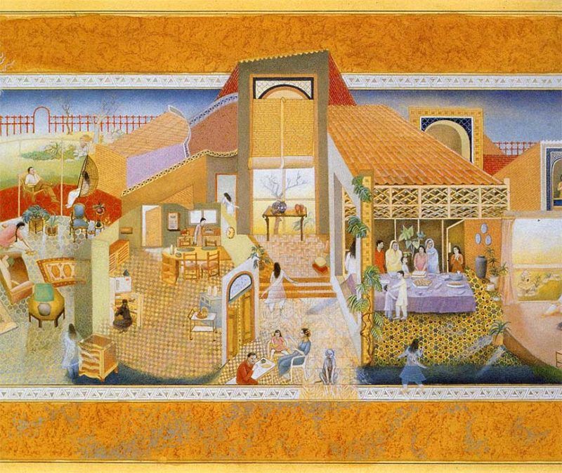 Sikander specializes in Indian and Persian manuscript painting, a traditional style that is both highly stylized and disciplined. While becoming an expert in this technique-driven, often impersonal art form, she imbued it with a personal context and history, blending the Eastern focus on precision and methodology with a Western emphasis on creative, subjective expression. In doing so, Sikander transported manuscript painting into the realm of contemporary art.