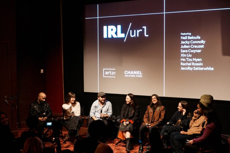 Attendees celebrated Art21’s new IRL/url series, presented by CHANEL Culture Fund. Yana Peel, President of Arts, Culture & Heritage at CHANEL, gave opening remarks. Tina Kukielski then moderated a panel with 7 out of 8 of the series’ featured artists, continuing an essential conversation about the overlap between physical and digital worlds. This increasingly hybridized landscape remains at the heart of the IRL/url series.