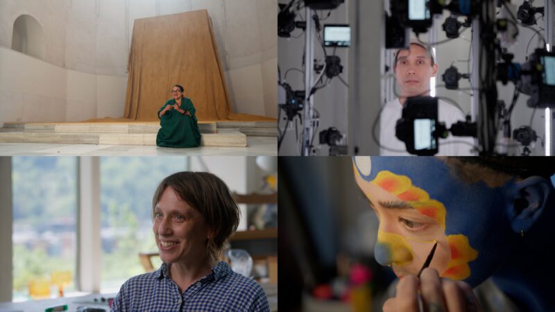 Production stills featuring Delcy Morelos, Lenka Clayton, Josh Kline, and Sin Wai Kin from the Art in the Twenty-First Century Season 12 episode “Human Nature.” © Art21, Inc. 2026.