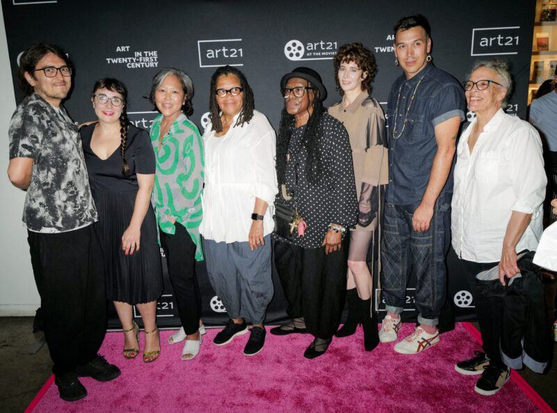 2023 Art21 at the Movies, Opening Night at Metrograph Theater. Pictured Left to Right: Esteban Cabeza De Baca, Tina Kukielski, Chiemi Karasawa, Linda Goode Byrant, Janet Olivia Henry, Miranda July, Cannupa Hanska Luger, Maren Hassinger. Photo: Jason Crowley/BFA.com © BFA 2023.