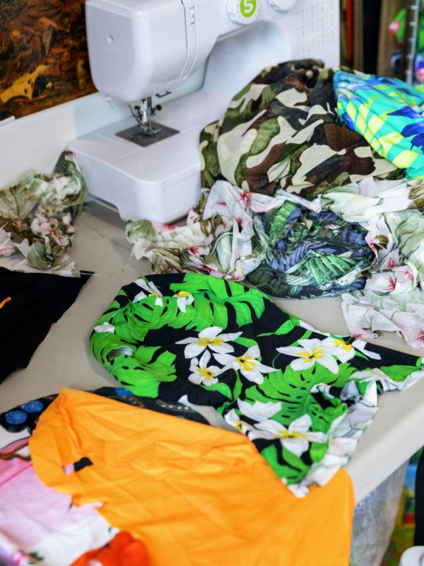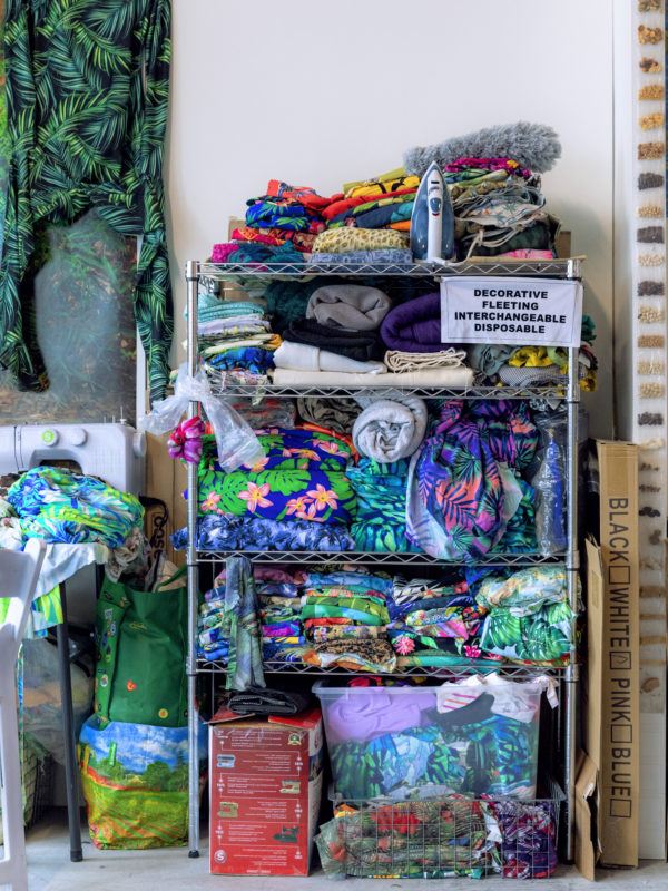 I was doing Google searches of “Dominican women” as a way to understand how Dominican women were represented to the world online through this label of identity. I started making collages with the images I found where I was denying the image of the woman, covering the image as a way to refuse or frustrate the desire to see that image: interrupting the process of consumption. I thought, I’m going to cover the image of this woman—this construction of the Dominican woman— with this tropical pattern, that is also a construction. Those collages ended up being source material for a body of work called Containers, where I started sewing bodysuits based on the poses that I saw repeated in the Google search results.