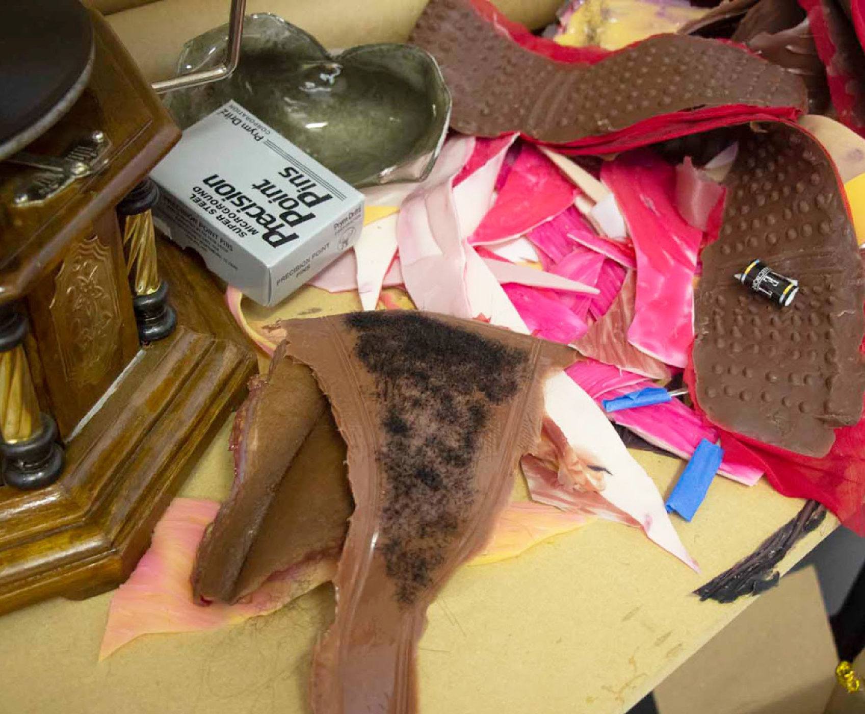 Doreen Garner Right now I work mostly in silicone, and random materials that get mixed into the silicone, but it started from working with glass at the Tyler School of Art in Philadelphia. It’s a challenging material, and is expensive outside of school. I found that it has a lot of similarities with the body and how the body is moldable, and death and rigor mortis. With a lot of glass casting, you take molds of objects and cast them in wax. That usually includes silicone or urethane rubber, which resembled skin to me, more than glass. Now I spend all my money on buckets of silicone.